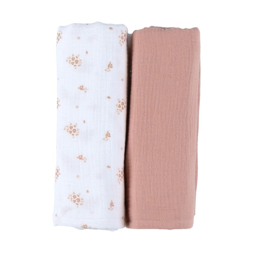 Lot de 2 langes 100x100cm, mousseline de coton bio - fleurs d'antan