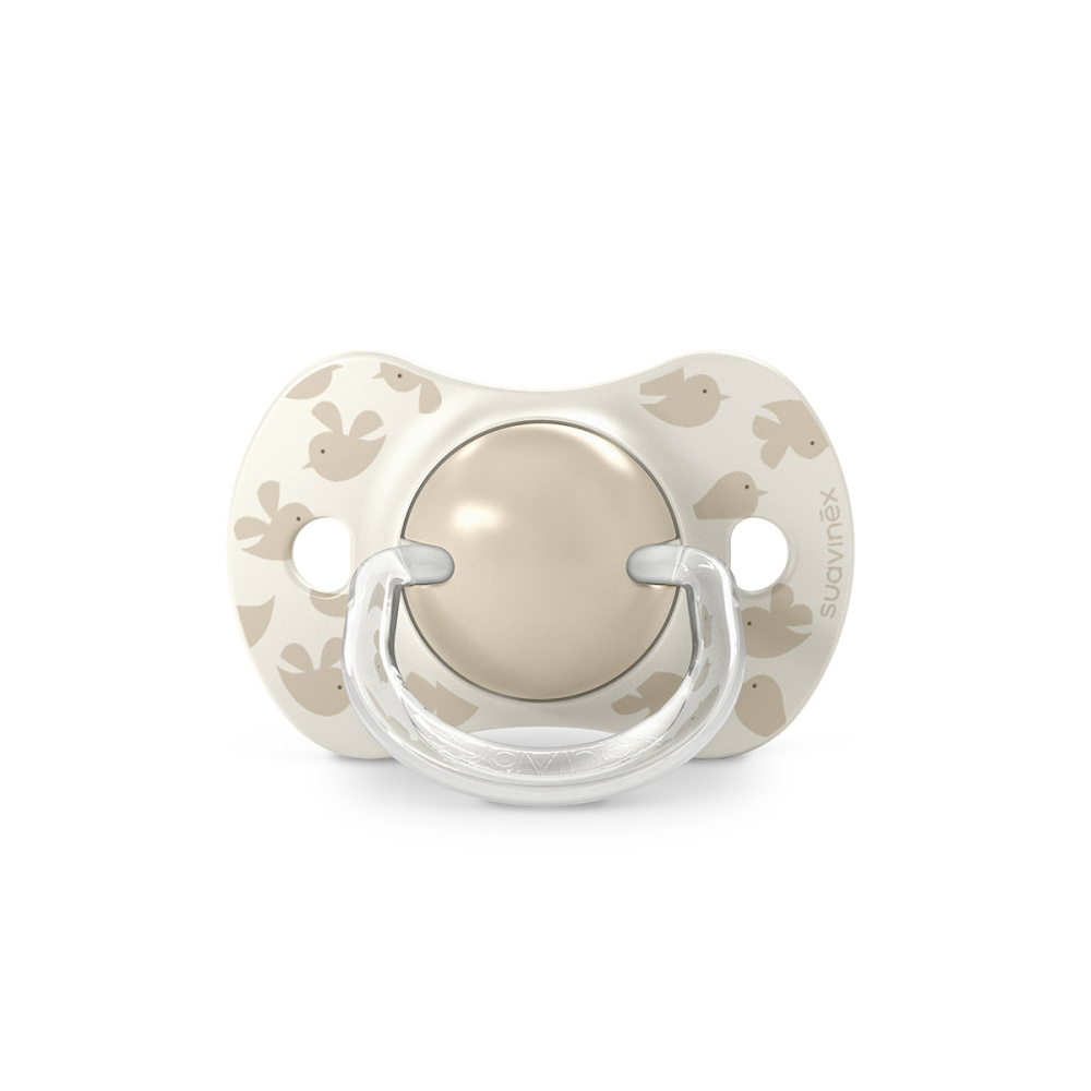 Le Lot de 2 sucettes symétriques sx pro birdies 6-18 mois beige de la marque Suavinex offre à bébé confort, sécurité et douceur au quotidien. Conçues avec l’expertise d’odontopédiatres, elles respectent le développement bucco-dentaire grâce à leur tétine physiologique plate et symétrique en silicone fin ultra-doux. Sa finition sablée reproduit la texture du mamelon maternel pour une sensation naturelle et apaisante. Sans BPA et décorées de délicats motifs Birdies, ces sucettes allient hygiène, élégance et praticité pour accompagner bébé dans tous ses moments de détente.