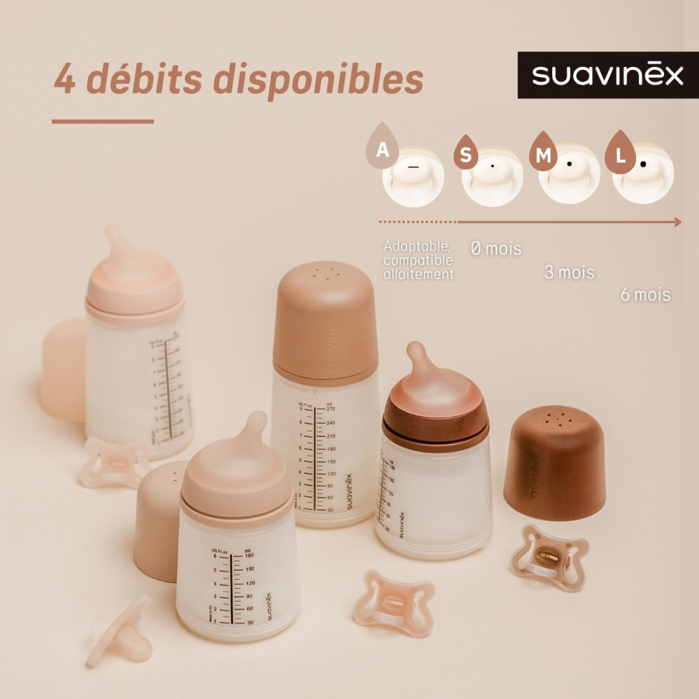 Le Lot de 2 tétines anti-colique pour biberon zerø.zerø débit lent medium de la marque Suavinex reproduit fidèlement les sensations de l’allaitement maternel pour faciliter la transition entre sein et biberon. Fabriquées en silicone ultra-doux, elles imitent la texture et la souplesse du mamelon, offrant un confort naturel à bébé. Leur forme allongée à base bombée permet à la bouche, la langue et la mâchoire de fonctionner comme lors de la tétée au sein, tandis que la position inclinée limite l’ingestion d’air, favorisant une posture détendue. Conçues pour réduire le reflux et prévenir les infections de l’oreille, ces tétines sont idéales dès la naissance, que bébé soit allaité ou non.