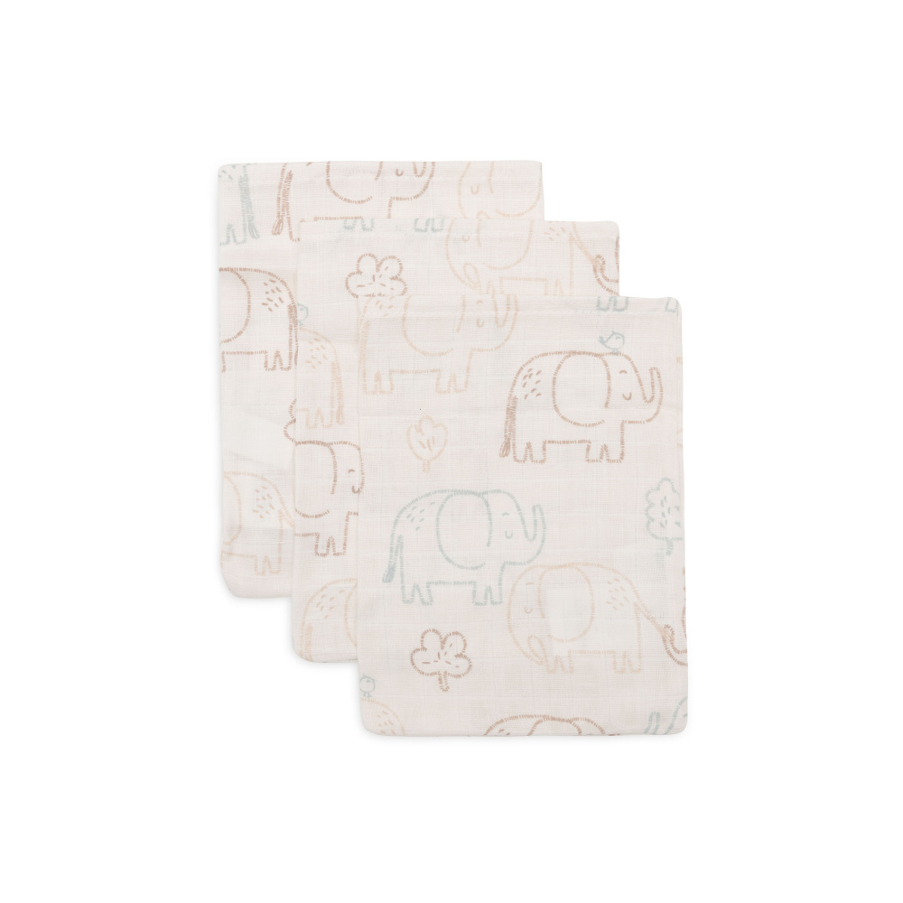 Lot de 3 gants de toilette gaze de coton elephant tales