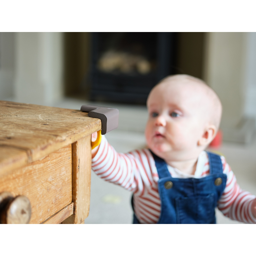 Lot de 4 petits coins en mousse antichoc gris clair de la marque Prince Lionheart. Avec ces petits coins, il n'y aura plus de risque que votre enfant en s'amusant se blesse en se cognant contre les coins de tables, de meubles et du plan de travail. La mousse est conçu pour bien absorber les chocs.