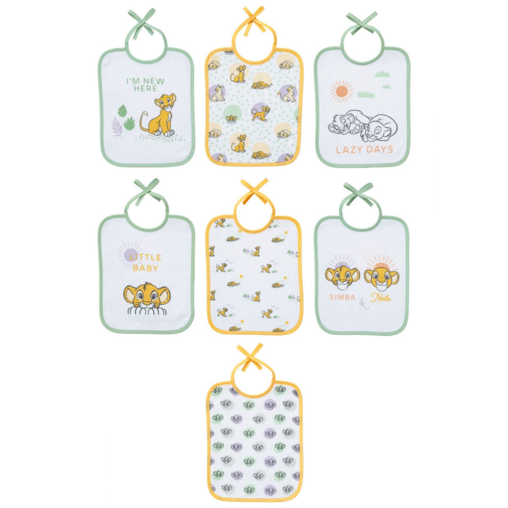 Le Lot de 7 bavoirs roi lion cosy de chez Babycalin. Ce lot de 7 bavoirs accompagnera les repas de votre bébé. Il restera propre et vous aurez pour chaque repas un bavoir propre à lui mettre.