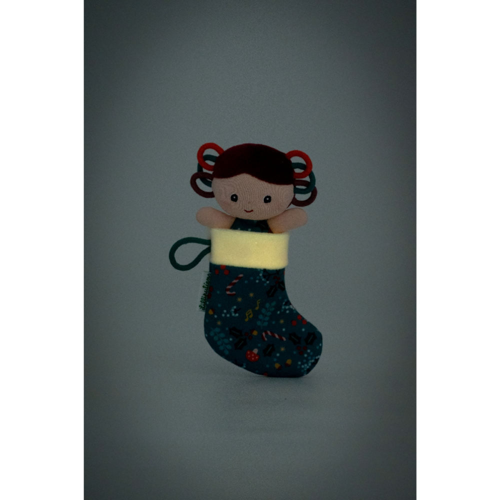Lutin de noël à suspendre joy de la marque Lilliputiens. C'est une très belle décoration sur le sapin de noël. Comme les boules et les guirlandes, lorsque la nuit tombe le lutin s'illumine.