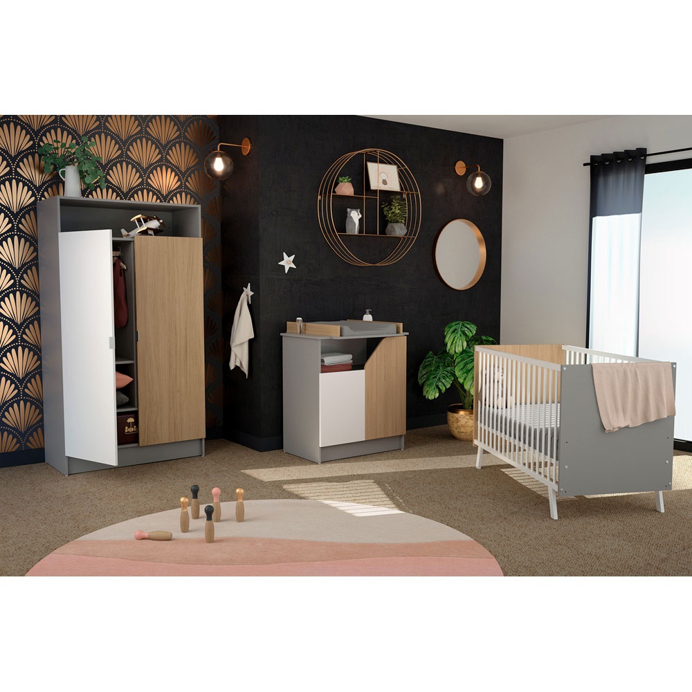 Meuble à langer carnaval blanc, gris et chêne