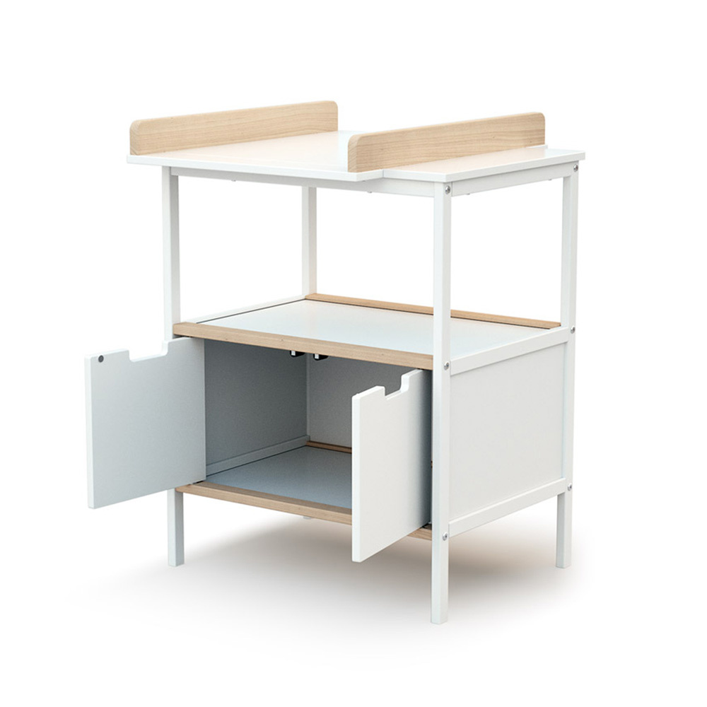 Découvrez le Meuble à langer essentiel plus blanc / hêtre brut de la marque AT4. Ce rangement moderne et pratique vous facilitera le quotidien. Composée d'une large étagère ouverte en partie haute et 2 portes pour fermer la partie basse, ce meuble vous permettra d'avoir un large espace de rangement. Ce meuble à langer pourra aussi évoluer avec le temps grâce à son plan à langer amovible, vous pourrez aussi l'utiliser comme commode dans la chambre de votre enfant même lorsqu’il ne portera plus de couches. Un meuble ergonomique de part sa dimension et ces rangements accessibles qui sera adapté au matelas à langer de 50 x 70 cm (non inclus). Livré en kit, ce meuble à langer sera très facile à installer