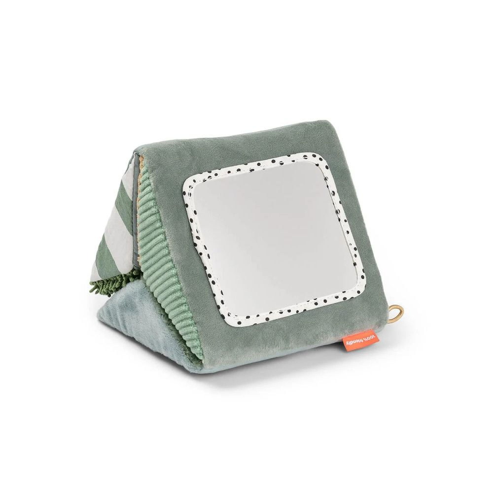 Le Miroir sensoriel pliable tiny farm multicolore de chez Done By Deer. Le miroir sensoriel est conçu pour être placé devant bébé lorsqu'il est sur le ventre. Cela l'encourage à lever la tête et à renforcer ses muscles du cou et du dos, tout en interagissant avec les éléments autour du miroir. Le miroir est riche en activités pour éveiller les sens de bébé. Le miroir lui permet de découvrir son propre visage, ce qui est essentiel pour le développement de la conscience de soi. Les couleurs vives et contrastées de ce miroir ainsi que les motifs inspirés de la ferme stimulent l'acuité visuelle. Ce jouet intègre des éléments tels qu'un hochet, une clochette, du papier bruissant et des textures variées pour développer le sens du toucher et de l'ouïe.