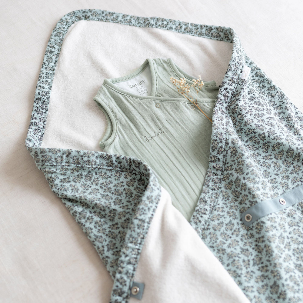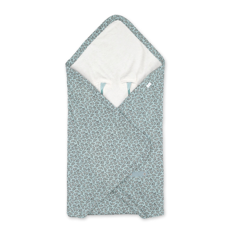 Nid d'ange biside en jersey heidi opalin de la marque Bemini. Il est conseillé d'utiliser ce nid d'ange pour les saisons d'été et beaux jours. Il s'installe très rapidement dans la coque grâce aux ouvertures zippées. Ce nid d'ange couvrira votre enfant pendant vos promenades en extérieur ou même les trajets en voiture. Le nid d'ange est conçu avec une doublure intérieur en fine bouclette éponge qui absorbe et est agréable pour la peau du bébé. Le produit est lavable en machine.