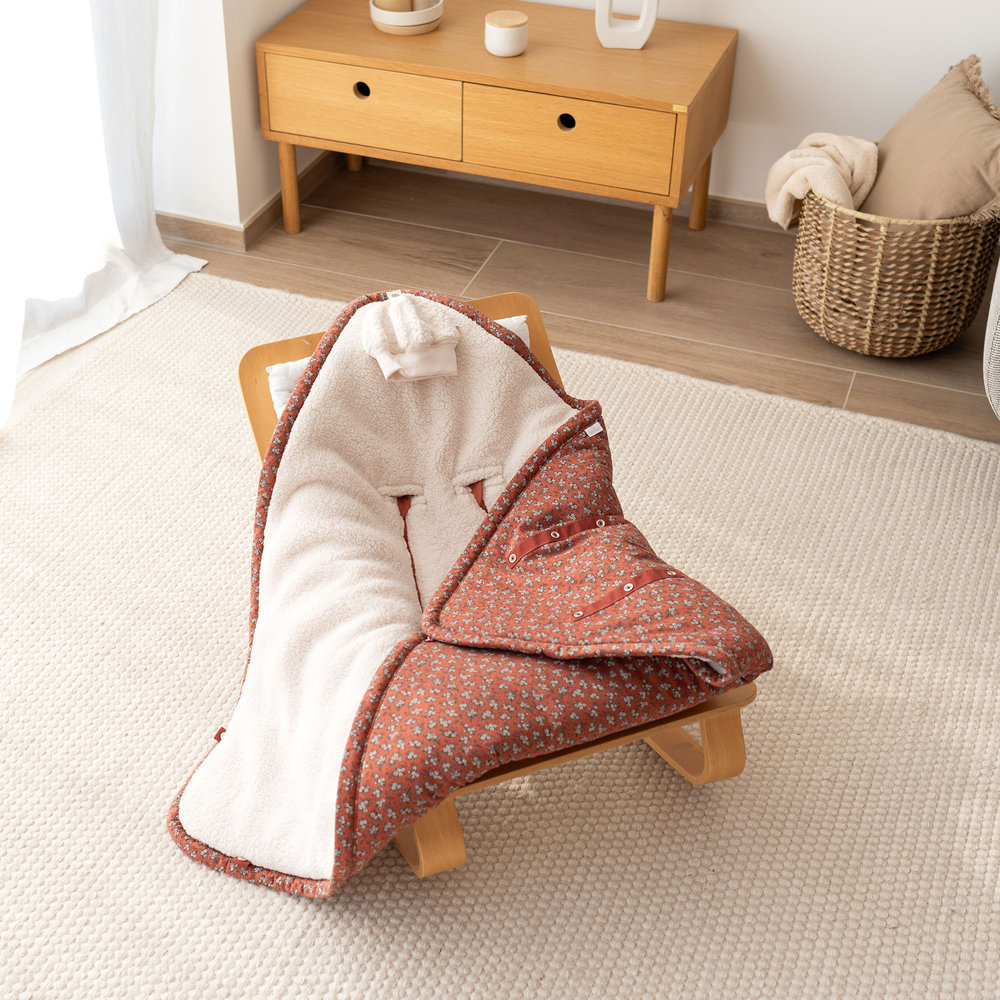 Nid d'ange biside pady jersey teddy carmin de la marque Bemini. Ce produit permet de couvrir et de tenir bien au chaud votre bébé pendant vos promenades d'hiver. Il y a aussi un bonnet pour couvrir la tête de votre enfant. La matière intérieur du nid d'ange est très douce et très agréable pour la peau de votre bébé. Le produit s'installe rapidement dans le cosy grâce aux ouvertures zippées. Le nid d'ange s'ajuste avec 3 boutons pressions. Il est lavable en machine.