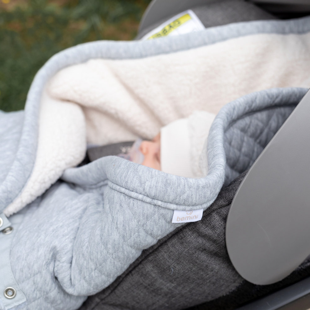 Nid d'ange biside pady quilted mix grey de la marque Bemini. Ce nid d'ange maintiendra bien au chaud votre bébé pendant les journées d'hiver et d'automne. Pour lui couvrir la tête, il y a même un bonnet. Les ouvertures zippées sur le nid d'ange permettront de faire passer les ceintures de sécurité. Ce produit répond parfaitement aux normes de sécurité routières. Le produit est lavable en machine à 30°C.