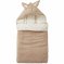 Ce magnifique nid d'ange est doublé de sherpa moelleuse, offrant à bébé un véritable nid douillet. De plus ce nid d'ange est entièrement zippé et comporte des fentes universelles à scratch pour le passage des sangles (siège auto ou poussette).