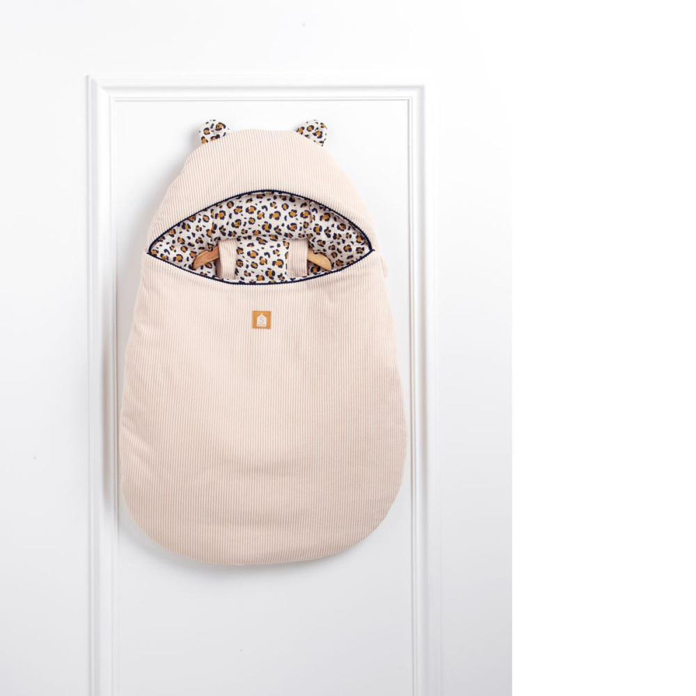 Le Nid d'ange nomade 0-3 mois léopard rose de chez Sauthon. Pour accompagner bébé dans ses sorties, Sauthon a imaginé ce nid d'ange dans un univers coloré léopard. Un velours tout doux et des imprimés graphiques s'associent pour emmener bébé aux pays des éléphants.