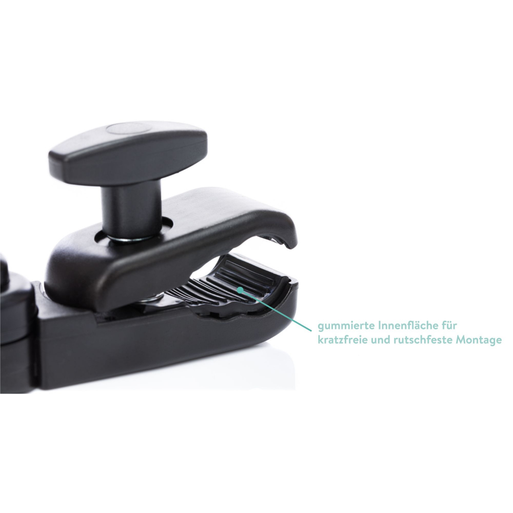 La fixation Easy Click, vous facilitera son installation et conviendra à la plupart des poussettes aux châssis à tube ovale ou rond.