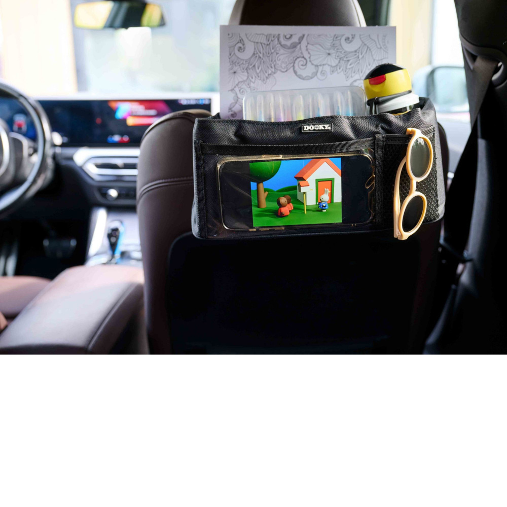 Gardez tout à portée de main et la voiture bien rangée grâce à cet organisateur pratique derrière le siège. L'organisateur appui-tete de voiture pour enfant Dooky est un organisateur de voiture conçu pour maintenir l’ordre lors des trajets. Il se fixe facilement à l’appuie-tête et permet de ranger bouteilles, mouchoirs, snacks, téléphone ou petits objets. Grâce à ses compartiments dédiés, les affaires restent accessibles et bien maintenues, sans risque de renversement. Cet organisateur de voiture a été conçu pour faciliter les déplacements avec enfants ou passagers. Sa conception robuste et ses rangements pratiques permettent de garder l’habitacle propre et organisé, même lors de longs trajets.