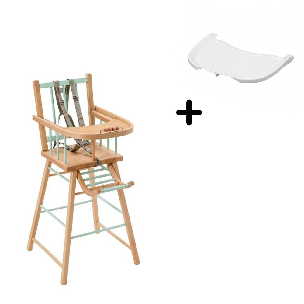 Pack chaise haute andré hybride vert mint et sa tablette blanche
