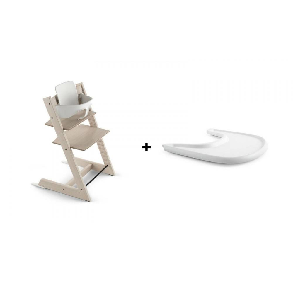Pack chaise haute tripp trapp + baby set + tablette blanchi
