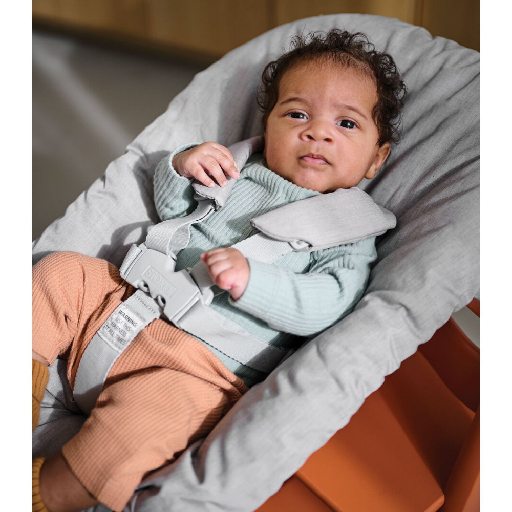 Pack chaise haute tripp trapp hêtre terracotta + newborn set gris de la marque Stokke. Ce pack est composé de la chaise haute Tripp Trapp et du newborn set.