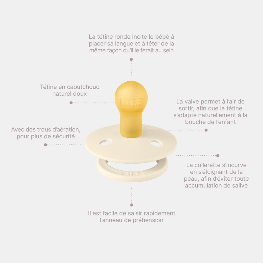Optez pour le Pack de 2 sucettes colour caoutchouc phosphorescente 6 mois+ sage et cloud de chez Bibs. Utilisable dès 6 mois, elles seront idéales pour rassurer et réconforter bébé. La tétine ronde de cette sucette en caoutchouc incitera bébé à placer sa langue et à téter de la même façon qu'il le ferait au sein. La valve permettra à l'air de sortir pour que la tétine s'adapte naturellement à la bouche de bébé. La collerette s'incurve en s'éloignant de la peau de bébé pour éviter l'accumulation de salive. Pratique, ces sucettes Bibs sont compatibles avec les attaches sucettes Bibs.
