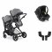 Pack duo poussette double atlantic jumeaux grey+ 1 siège auto drive n care avec adaptateurs