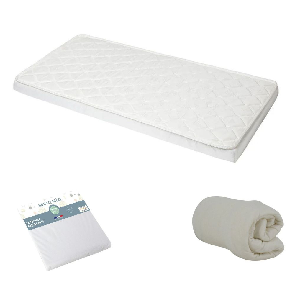Pack matelas bébé climatisé + alèse blanc + drap housse écru - 60 x 120 cm