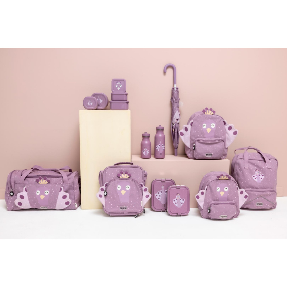 Laissez vous séduire par le parapluie enfant Mrs. Peacock de la marque Trixie. Il a été conçu pour être utilisé en toute sécurité dès 3 ans. Il arbore de jolis motifs qui feront la fierté de votre enfant. Il est composé d'une armature en aluminium. Le système coulissant d'ouverture et de fermeture est adapté aux petites mains de votre enfant.