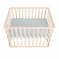 Ce Parc bébé 75 x 100 cm bois naturel et tapis de parc vert est équipé d'un insert en tissu pour installer confortablement votre bébé ou entourer les barreaux du parc.