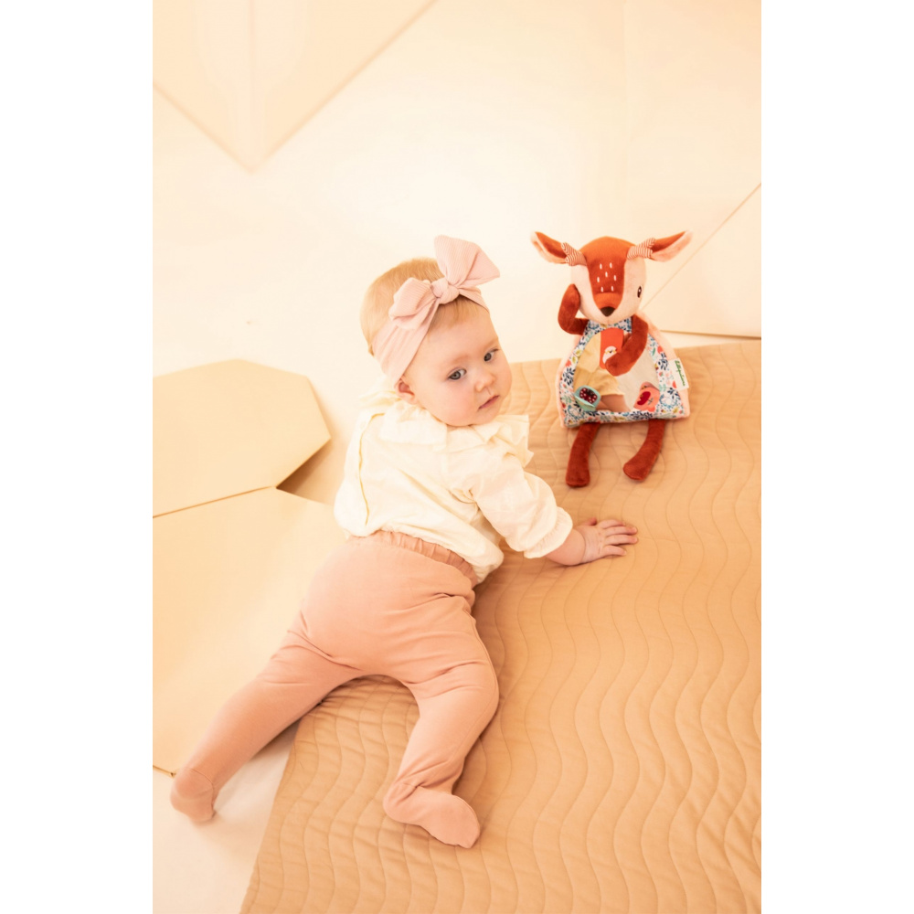 Peluche miroir d'activités stella de la marque Lilliputiens. Cette peluche miroir est adaptée aux petites mains des bébés. Votre nourrisson adorera se regarder dans le miroir en plein milieu du ventre de la peluche. Les pattes sont magnétiques et se referment sur les yeux et il y a aussi du papier bruissant dans les pattes.