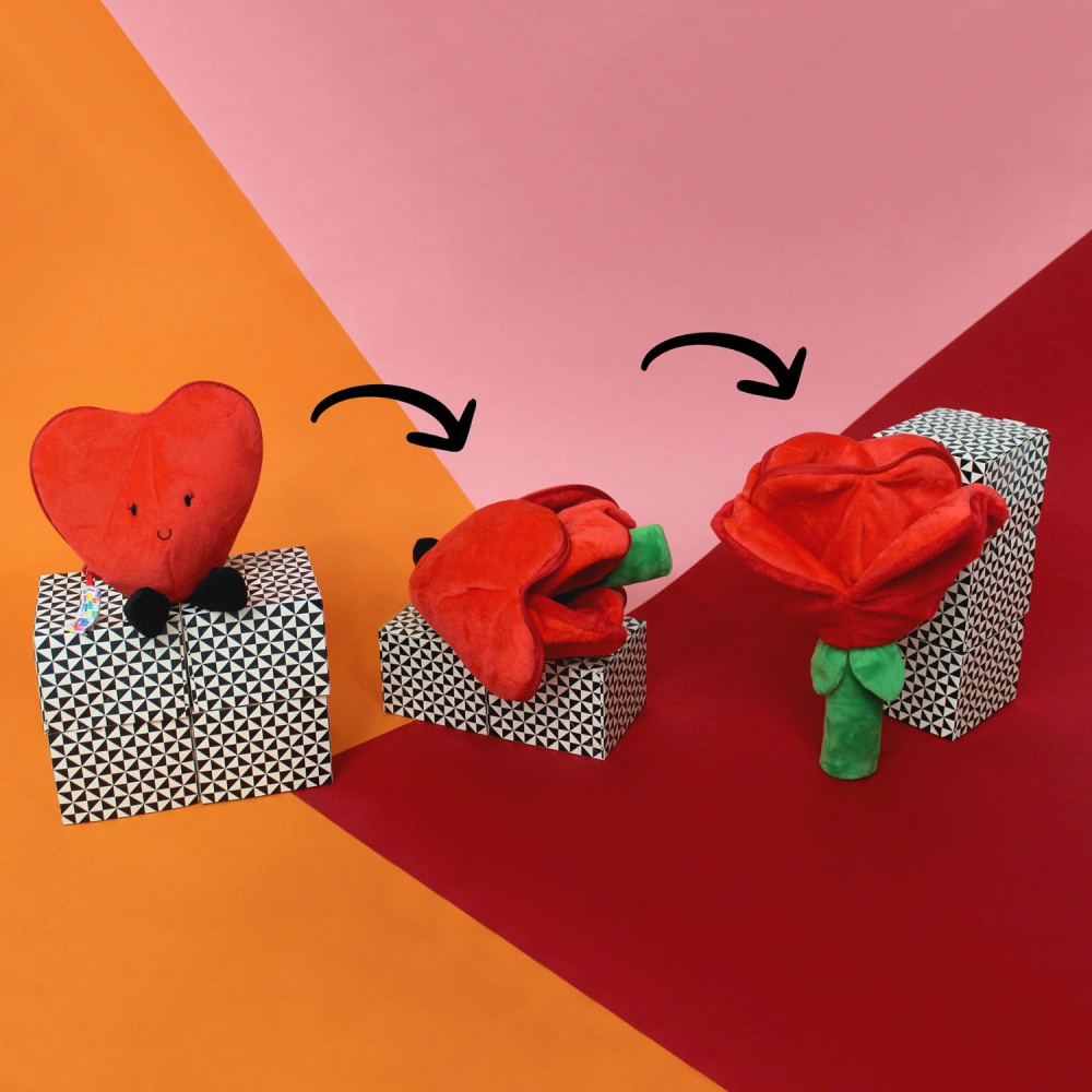 Découvrez la Peluche réversible flipetz coeur et fleur rouge coquelicot de la marque Les Déglingos !