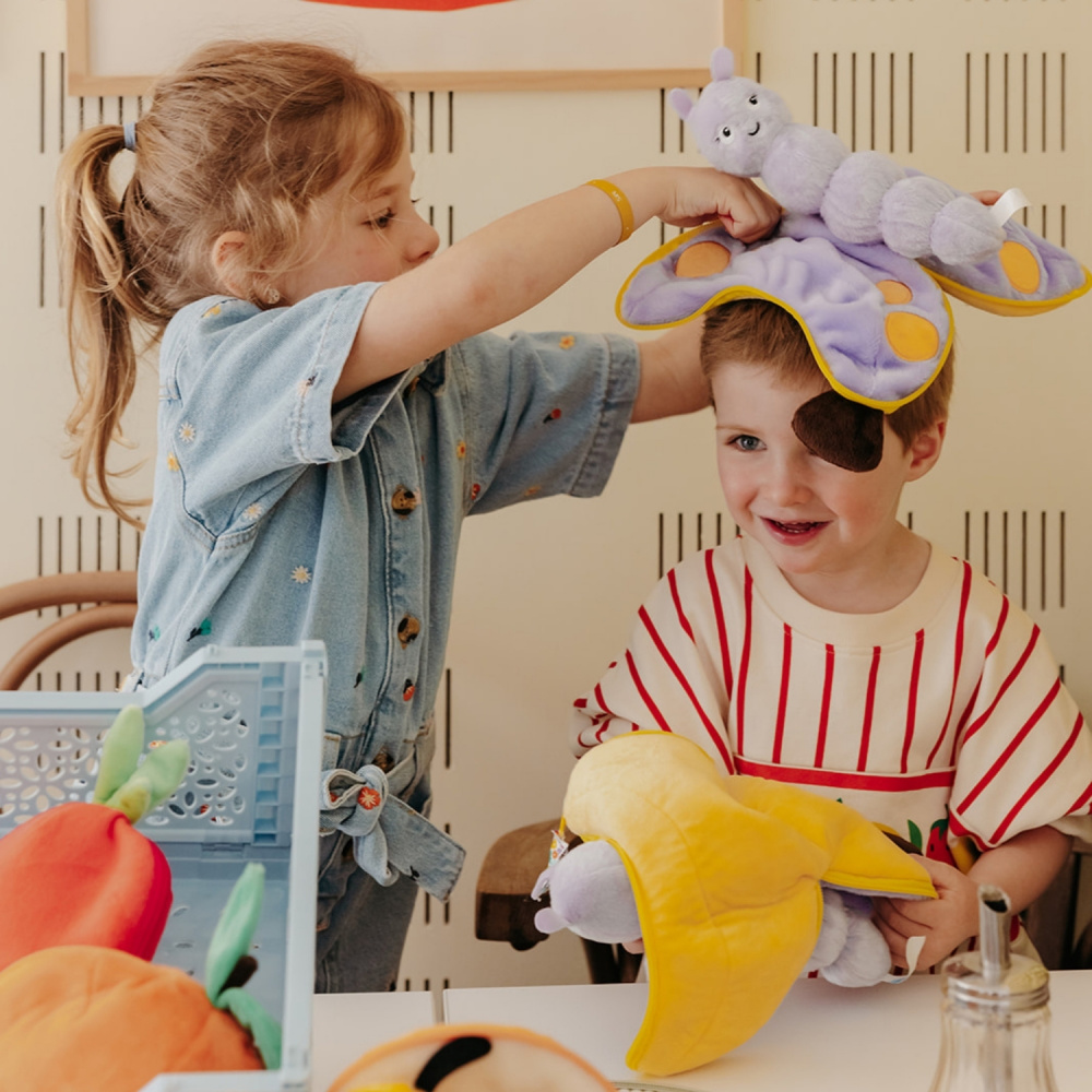Elle est réversible, elle se transforme d'un fruit ou légume en un animal à l'aide d'un zip !