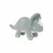 La peluche en forme de dinosaure, elle est de couleur gris-bleu avec des tâches ivoires. Les oreilles émettent un bruit de froissement.