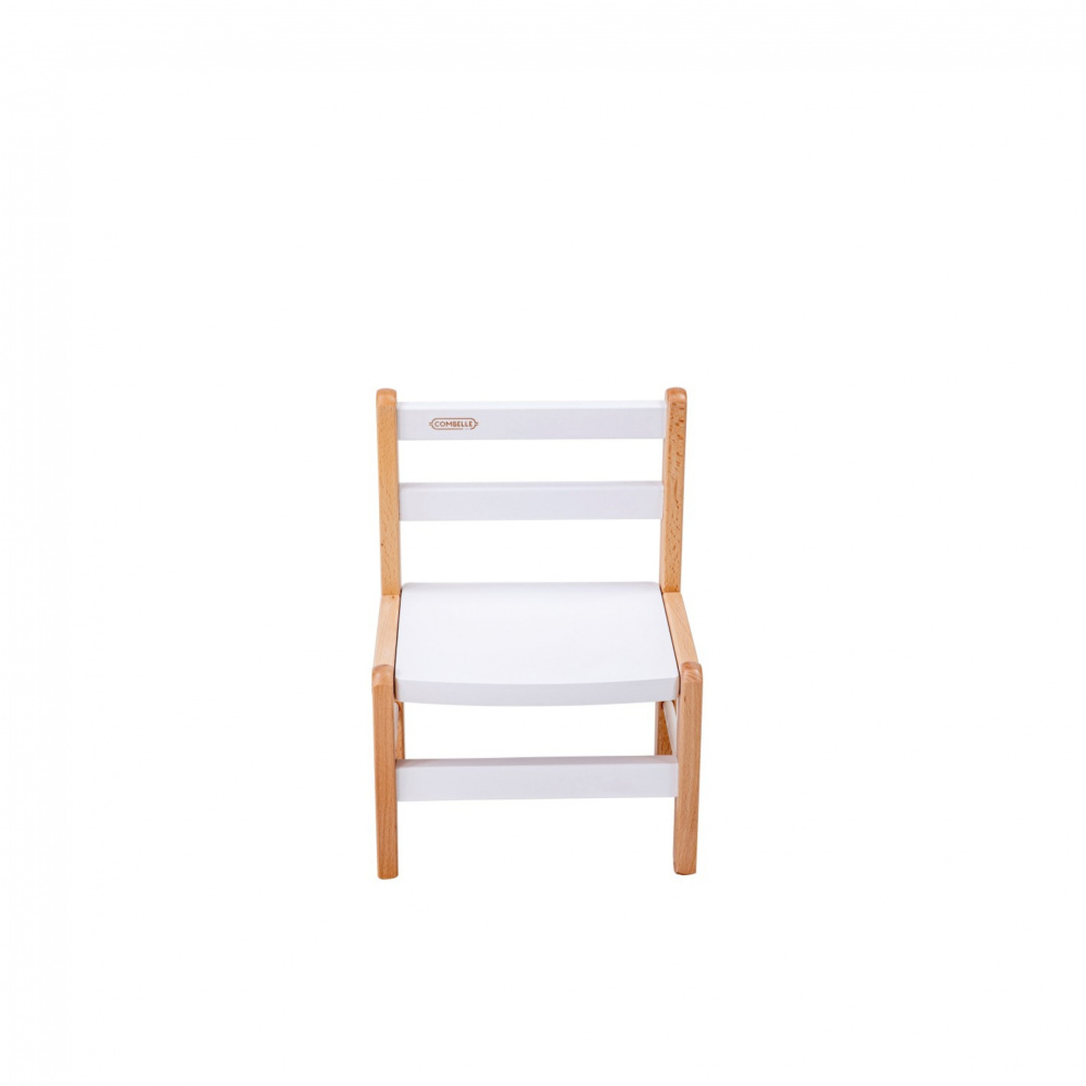 Petit bureau tom vernis naturel + chaise basse louise hybride blanc de la marque Combelle. Ce pack est composé du bureau Tom et de la chaise basse Louise.