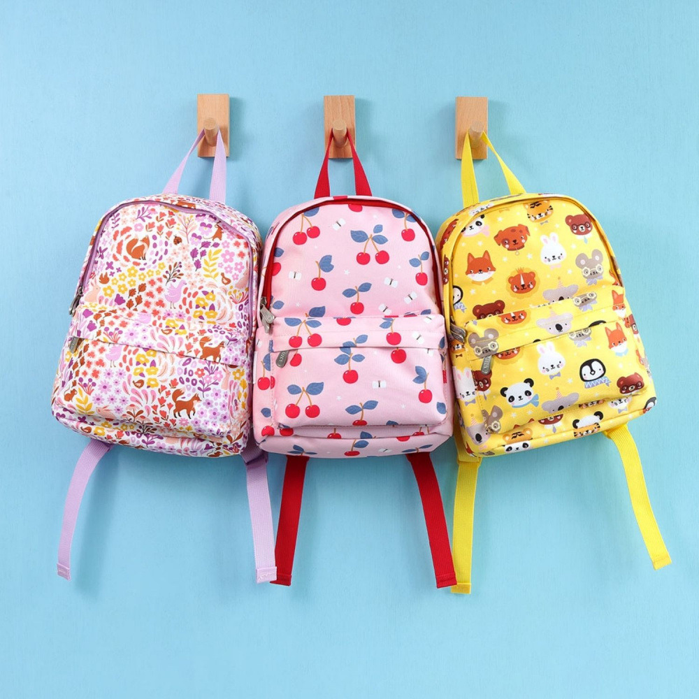 Ce Petit sac à dos cerises possède des bretelles réglables et une sangle pour maintenir les bretelles et répartir le poids du sac à dos maternelle. Votre enfant pourra facilement l'ouvrir pour y glisser ses petits trésors grâce à la fermeture éclair. Ce sac à dos A Little Lovely Company sera parfait pour aller à la maternelle, bébé pourra y ranger son goûter et son doudou.