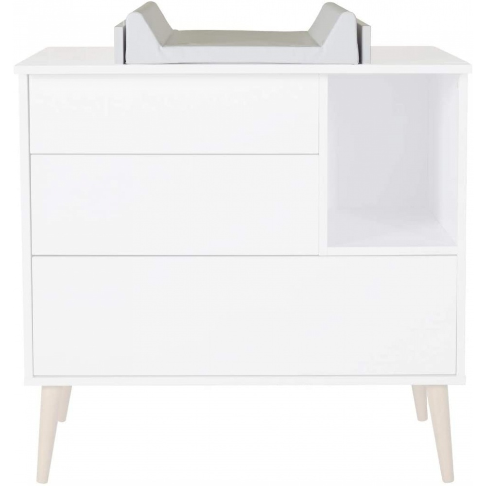 Le Plan à langer pour commode cocoon ice white de chez Quax. Ce plan à langer est conçu pour s'adapter à la commode 3 tiroirs 1 niche Cocoon (vendue séparément) de la même marque.