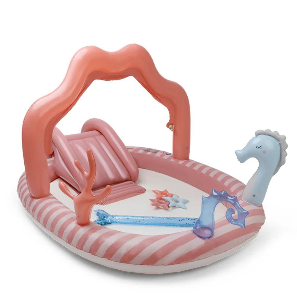 - Accessoires inclus : 3 jouets gonflables,1 arroseur (sprinkler) intégré,1 toboggan gonflable