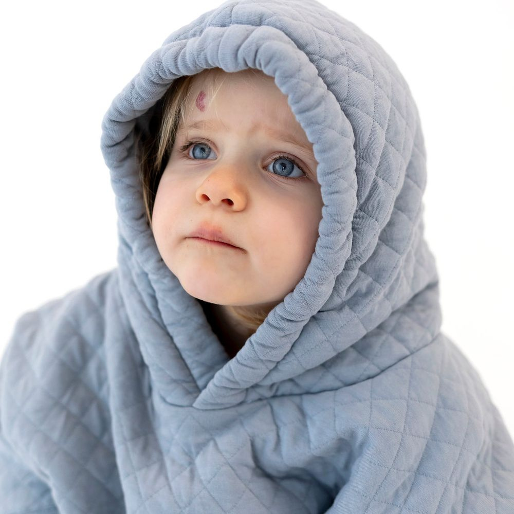 Poncho chaud de voyage pady quilted jersey stone de la marque Bemini. Ce produit est très pratique : il permet de tenir au chaud votre bambin pendant vos sorties extérieures et en voiture. Le poncho de voyage répond aux critères de sécurité routières, votre bébé pourra le garder assis dans son siège auto ou dans sa poussette. Il est possible de créer des manches avec les pressions aux emmanchures. La matière du poncho ouatiné et matelassé apporte une sensation agréable à votre enfant. Le poncho est équipé d'une capuche qui recouvre bien la tête de l'enfant. Ce produit est lavable en machine à 30°C.