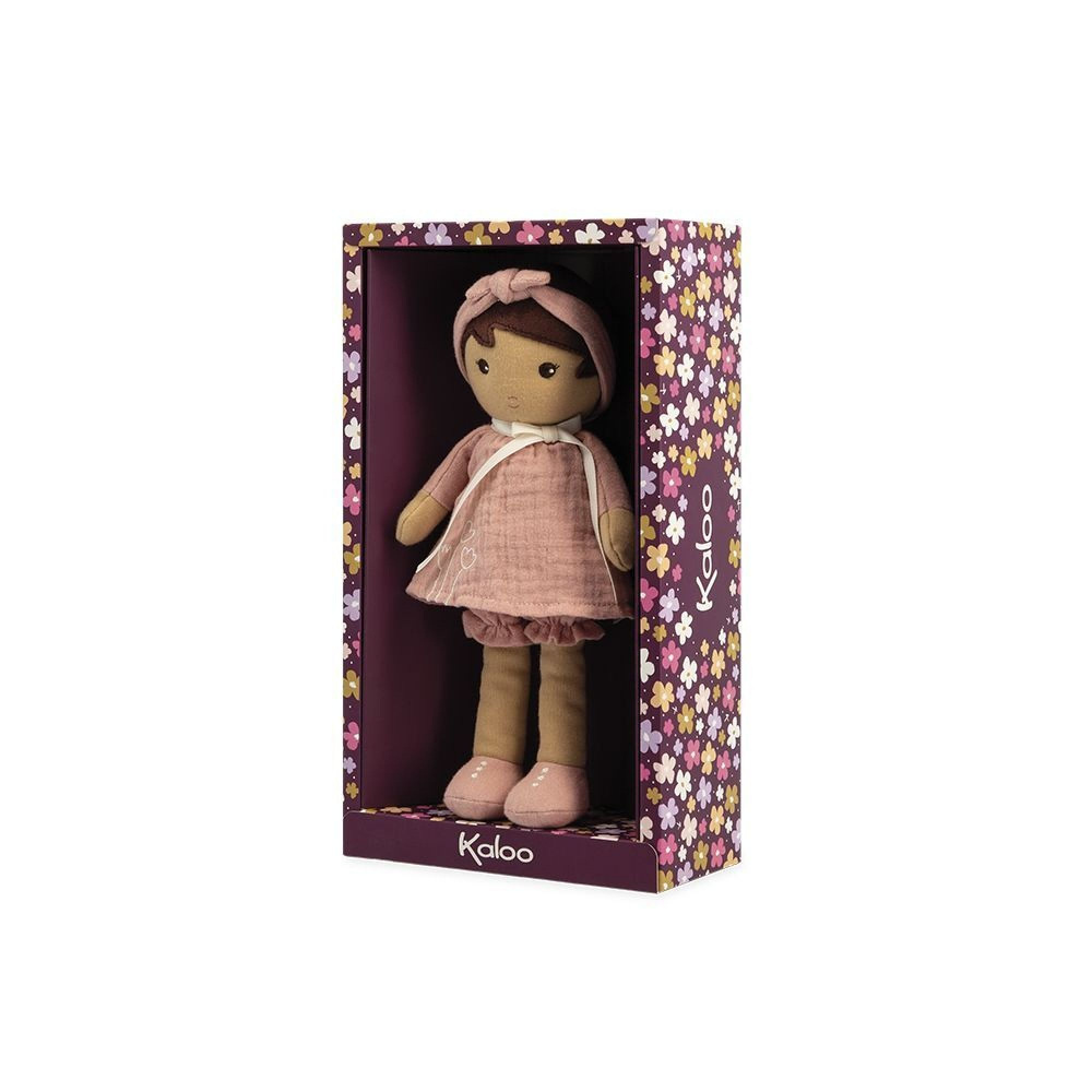 Poupée tendresse amandine 25 cm de la marque Kaloo. Votre enfant va adorer s'amuser avec cette poupée toute douce. Il pourra en plus s'amuser à habiller sa poupée avec la jolie robe. Vous pourrez écrire le prénom de votre enfant sur le ruban qui sert d'écharpe à la poupée.