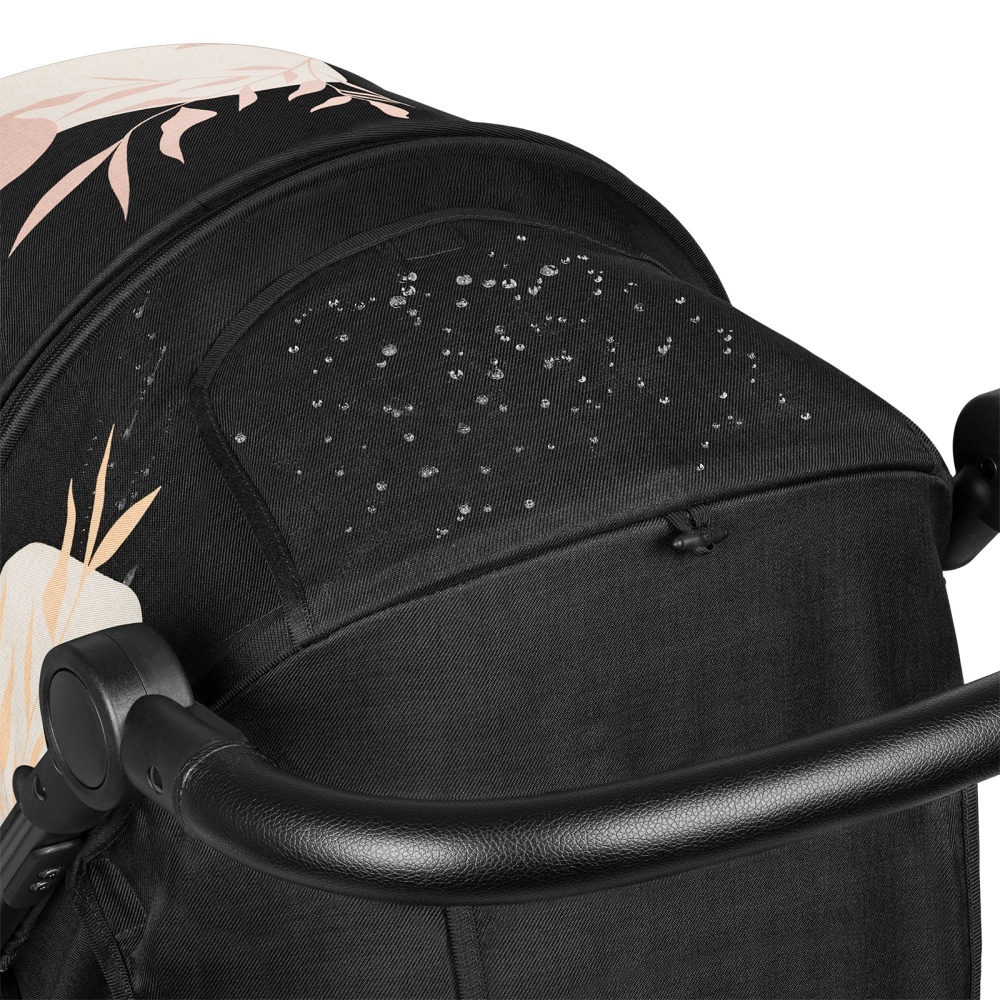 Les roues de la poussette Annet plus pivotent à 360 °, ce qui la rend très maniable dans les virages. Les amortisseurs réduisent les chocs sur les terrains accidentés. Le système de blocage des roues avant facilite la conduite en ligne droite sur des surfaces cahoteuses.