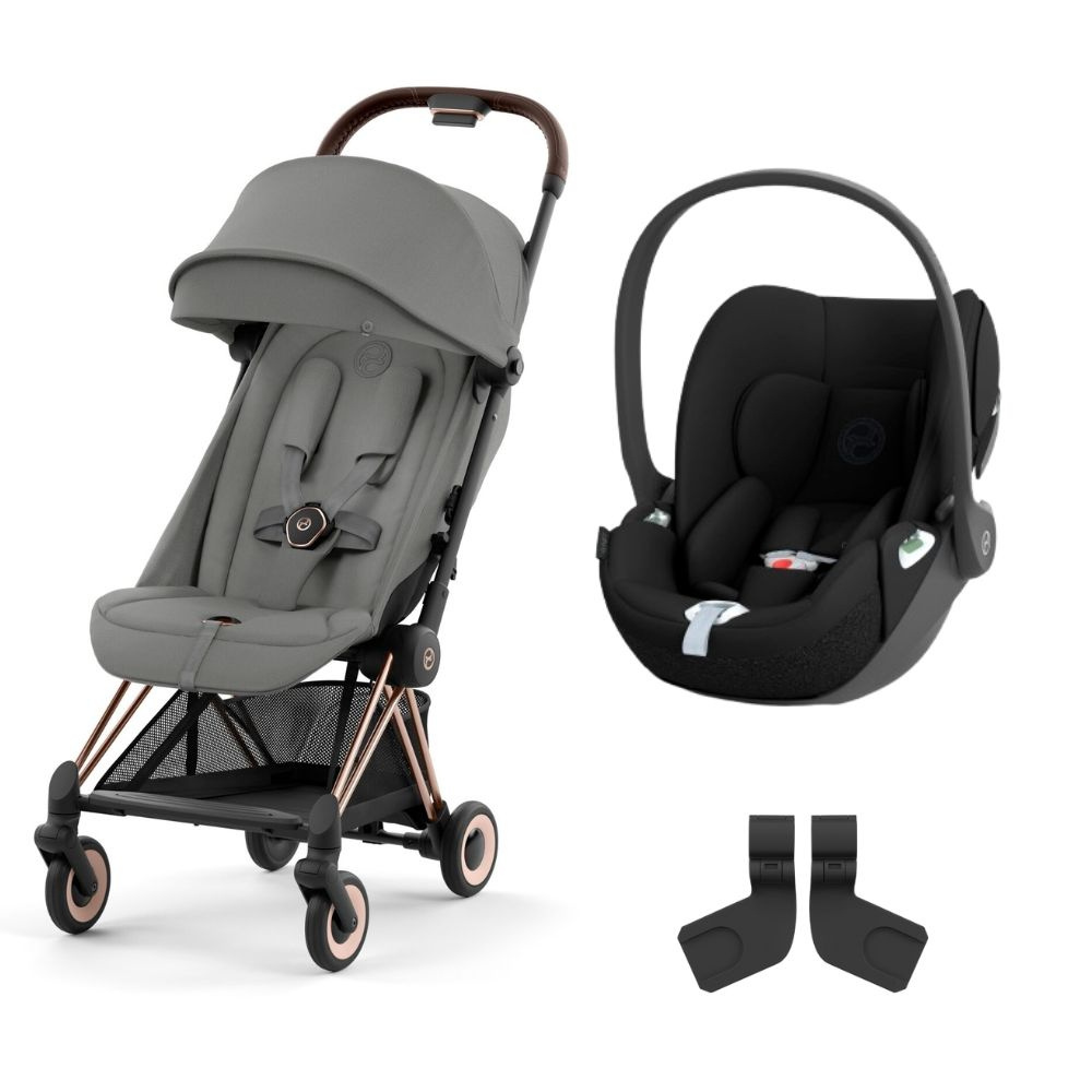 Découvrez la Poussette duo coya mirage grey châssis rosegold + cloud t i-size de la marque Cybex Platinum ! Composée de la poussette Coya et du siège auto Cloud T i-Size.