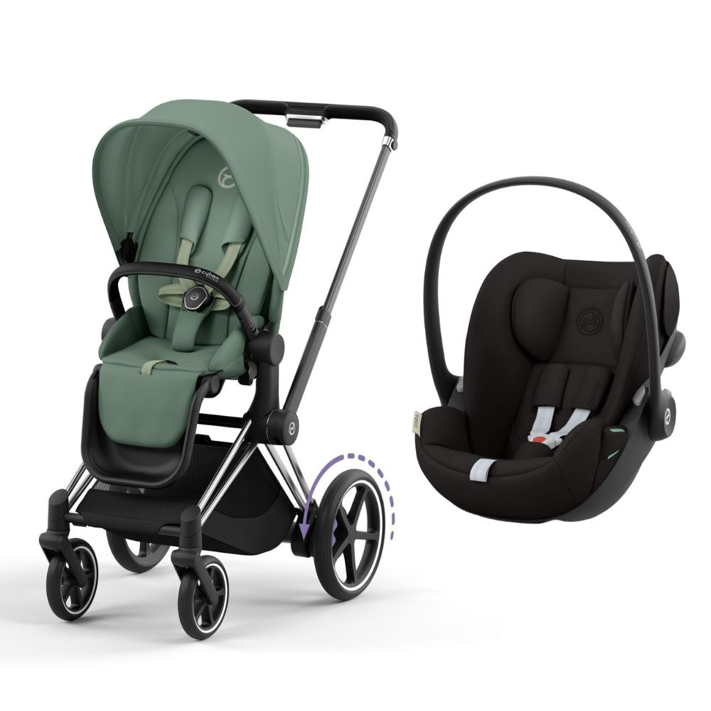 Craquez pour la Poussette duo e-priam 2 leaf green châssis chrome black + cloud g i-size de la marque Cybex. Composée de la poussette e-Priam 2 et du siège auto Cloud G i-Size.