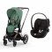 Poussette duo e-priam 2 leaf green châssis rose gold + cloud g i-size