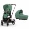 Poussette duo e-priam 2 leaf green châssis rose gold + nacelle luxe