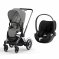 Adoptez la Poussette duo e-priam 2 mirage grey châssis chrome black + cloud t i-size de la marque Cybex. Composée de la poussette e-Priam 2 et du siège auto Cloud T i-Size.