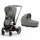 Poussette duo e-priam 2 mirage grey châssis rose gold + nacelle luxe
