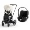 Adoptez la Poussette duo e-priam 2 off white châssis chrome black + cloud t i-size de la marque Cybex. Composée de la poussette e-Priam 2 et du siège auto Cloud T i-Size.