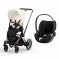 Adoptez la Poussette duo e-priam 2 off white châssis rose gold + cloud t i-size de la marque Cybex. Composée de la poussette e-Priam 2 et du siège auto Cloud T i-Size.
