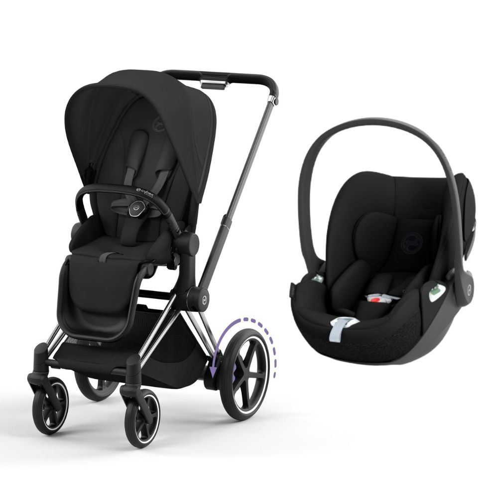 Adoptez la Poussette duo e-priam 2 sepia black châssis chrome black + cloud t i-size de la marque Cybex. Composée de la poussette e-Priam 2 et du siège auto Cloud T i-Size.