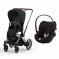 Craquez pour la Poussette duo e-priam 2 sepia black châssis rose gold + cloud g i-size de la marque Cybex. Composée de la poussette e-Priam 2 et du siège auto Cloud G i-Size.