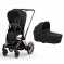 Poussette duo e-priam 2 sepia black châssis rose gold + nacelle luxe