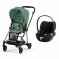 Adoptez la Poussette duo mios 3 leaf green châssis matt black + cloud t i-size de la marque Cybex. Composée de la poussette Mios 3 et du siège auto Cloud T i-Size.