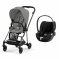 Adoptez la Poussette duo mios 3 mirage grey châssis matt black + cloud t i-size de la marque Cybex. Composée de la poussette Mios 3 et du siège auto Cloud T i-Size.