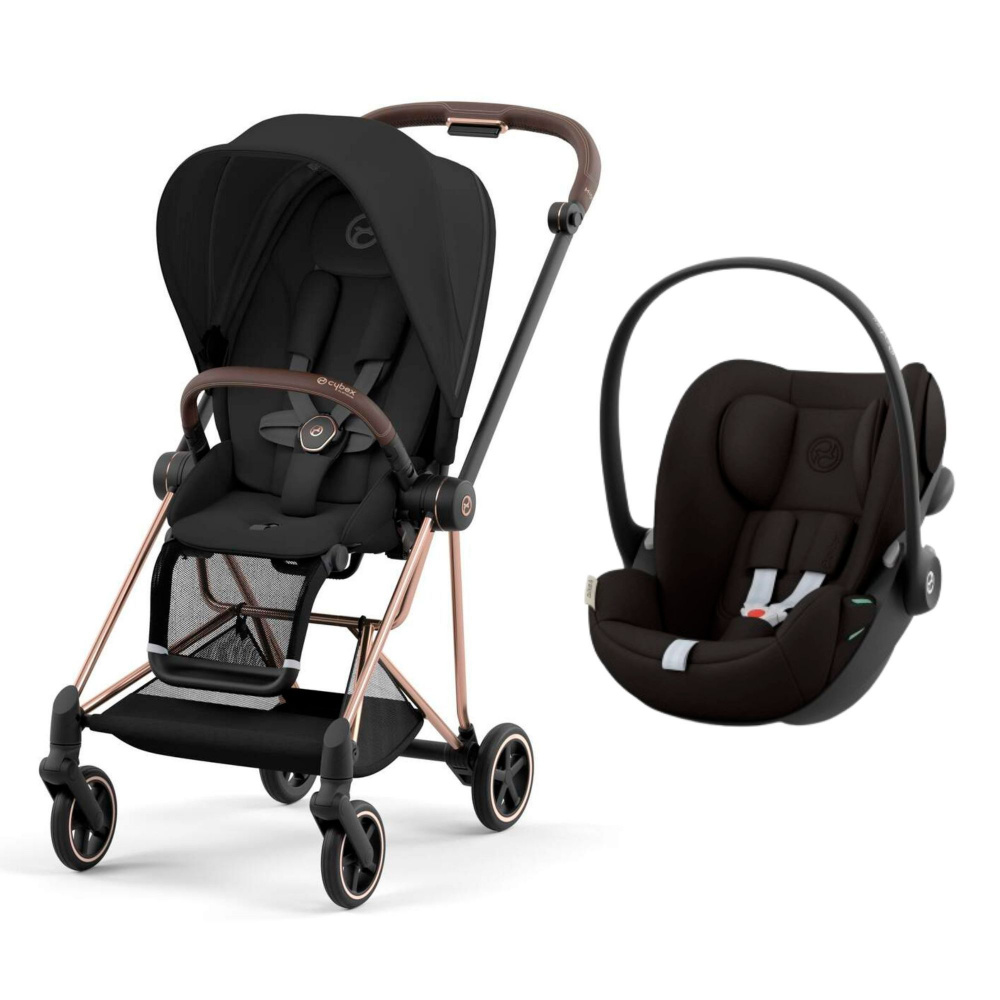Découvrez la Poussette duo mios 3 sepia black châssis rose gold + cloud g i-size de la marque Cybex. Composée de la poussette Mios 3 et du siège auto Cloud G i-Size.